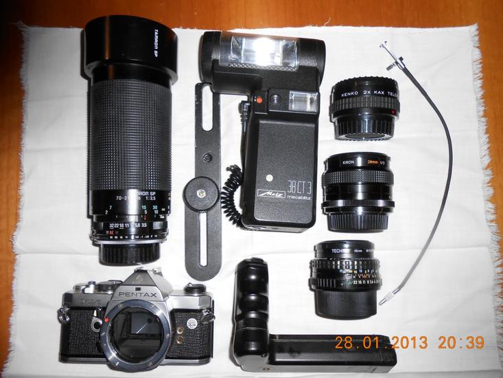 Per gli amanti delle cose fatte bene, vendo una macchina fotografica manuale Pentax mx (per rullino fotografico-no digitale) provvista di: obiettivo Pentax 50 mm.-1:1,7 provvisto di filtro skylight; zoom Tamron 70/210-1:3,5; grandangolo Kiron 28 mm; duplicatore di focale Kenko 2x kax teleplus mc4; flash Metz 38 ct 3 mecablitz con staffa; cavetto per le riprese in modalità B; slitta per eventuale flash non dedicato.<O:p</O:p