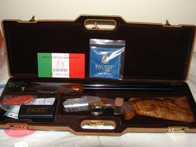 Vendo per inutilizzo sovrapposto della FAUSTI modello "SOVRANO" tipo Sporting, cal. 12, canne cm 71 con strozzatori intercambiabili, monogrillo selettivo, ejector, chiave traforata, cartelle lunghe con incisioni rifinite dalla bottega Pasolini, calciolo in legno con borchie d'acciaio, legni bellissimi. Arma pari al nuovo (ha sparato una sola volta) con garanzia FAUSTI. Valigetta originale Fausti. Prezzo di realizzo € 2.900,00 N.T. per info 335/1530981