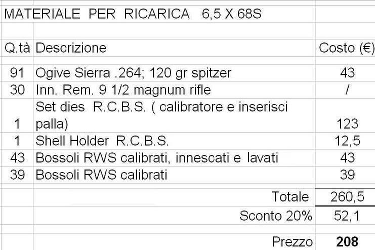 Vendo materiale per ricarica 6,5x68S