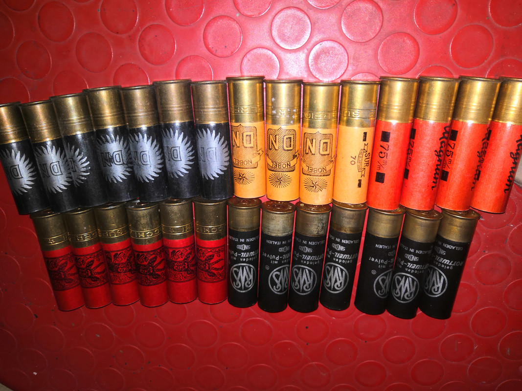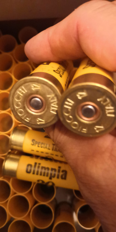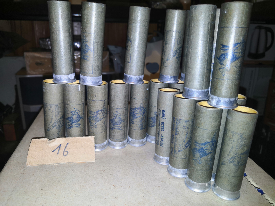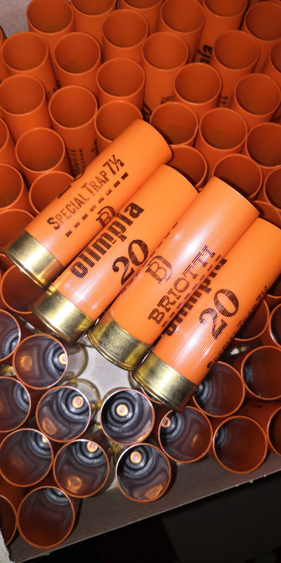 Bossoli in plastica vintage da collezione marchiati da ANTICA ARMERIA Briotti del lazio chiusa da anni. Calibro 12, Fondello T2, altezza 70 mm, innesco come da foto (da poco competente che sono penso 616 sul colore arancio oppure 464 Fiocchi sul colore giallo. Comunque ogni valutazione in merito al funzionamento dell"innesco è rimessa all'acquirente). Ho due diversi colori giallo e arancione in buona quantità (scegliete il colore che volete).