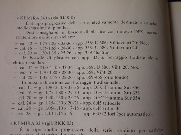 da DienneMi riferisco a un assetto con la RKK0 old latta bianca da 1Kg con scritta nera in bossolo IMI Vigevano 12/70, innesco Kemira20 foglietto copri foro verde,...