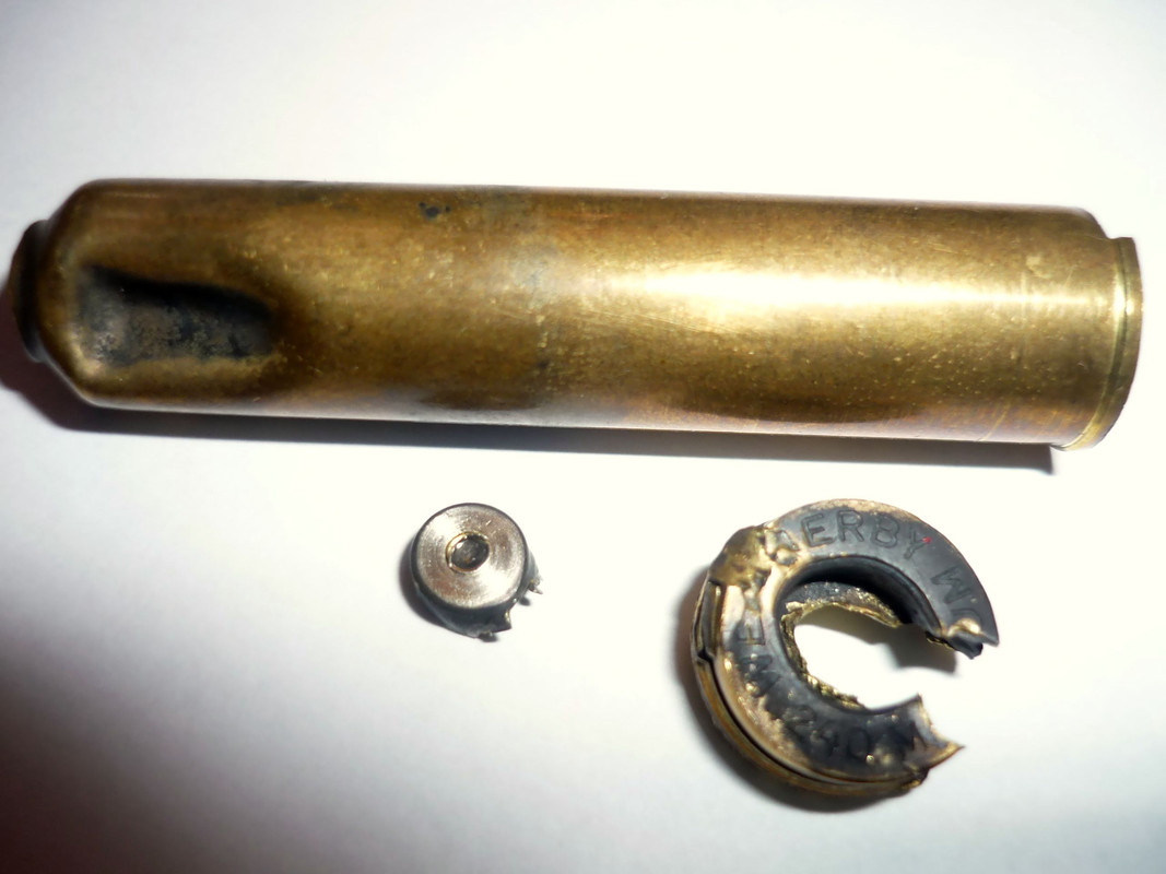 Impossibile ogni tentativo di recupero dei componenti (polvere essenzialmente) con il mantello inerziale e solo dopo decapitazione del bossolo con tanto di morsa e becco di pappagallo da trombaio da 60 cm di manico!