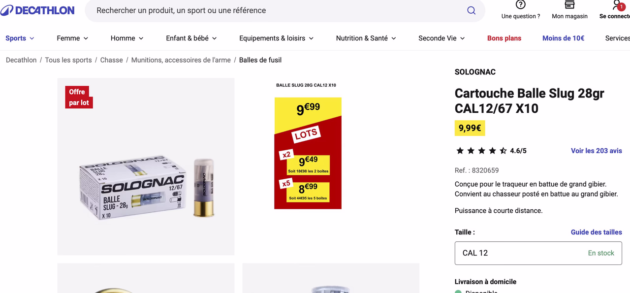 Incuriosito dal fatto che Decathlon in Francia vendesse pure munizioni e, ovviamente, ad un ottimo prezzo, ho fatto un breve giro online sui prezzi che le armerie pubblicizzano per le munizioni slug che vendono in ITALIA (ovviamente).