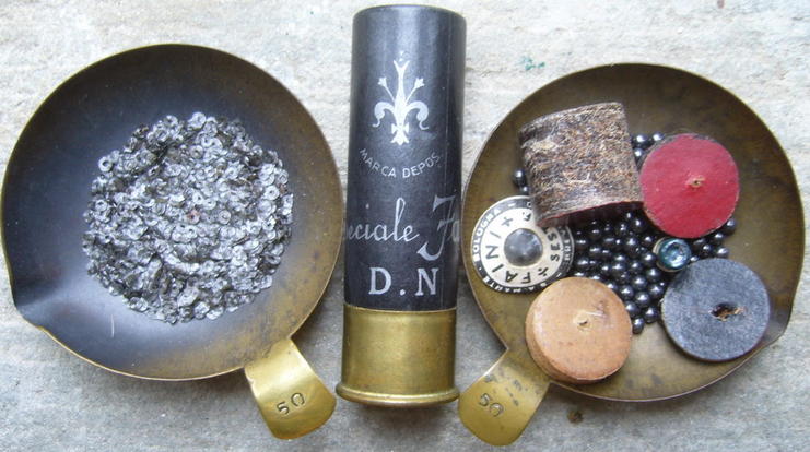 Visto che in collezione le ho già, l'ho sezionata, all'interno vi ho trovato una dose bassa per quanto riguarda la polvere, rispetto ai 36 gr. di piombo, forse era qualche lotto particolare e magari prodotta ad Avigliana la quale aveva la caratteristica di essere leggermente più vivace di quella prodotta ad Orbetello.Vi posto gli assetti di caricamento: