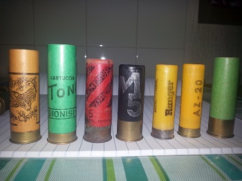 la prima foto sono due cartucce dell'armeria galloni arcidosso grosseto, la prima della seconda foto una gloriosa patarca super 32, una rottweil capriolo, S4 titan, poi nella seconda foto la prima da sinistra ce una grande cartuccia per noi siciliani la famosa soft con 28,5 grammi, poi una ranger vecchissima con dentro borra in sughero con couvette, la special winchester, una negrello P4, una negrello P1, poi terza foto,da sinistra una cheddite in cartone, una cartuccia toni della dionisi di ascoli piceno ( ne ho almeno 100 ) poi la famosa sur 34g, una M50 armeria maffei di Siena, la ranger cal 20, la AZ 20 cal 20, e per ultimo un bossolo ignoto nel fondello ce scritto manufrance S. etienne in cartone. Quello che mi ha colpito più di tutti questo bossolo francese in cartone, e la ranger con borra in sughero, non lo sapevo. CiaoCommenta