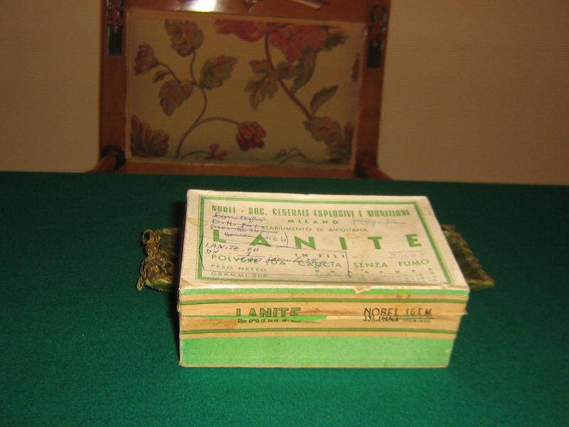 la confezione della LANITE è in cartone da come si evince dalla foto, la latta più grande di colore giallo suppongo sia Tedesca, la piccola sempre gialla è della Nobel's Exsplosives Company Glasgow.