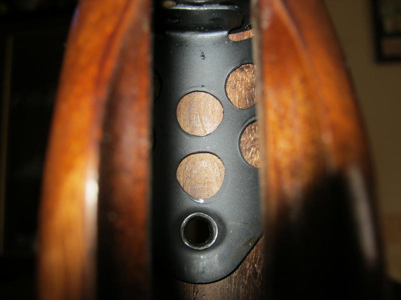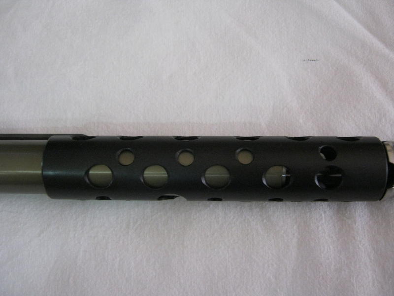 manicotto di riarmamento forato ad alternazione con fori grandi e piccoli in moda da allegerirlo e anche se pesa qualche grammo in piu' rispetto quello sull articolo ,in questo modo mantiene piu farza per le grosse grammature (opinione mia)