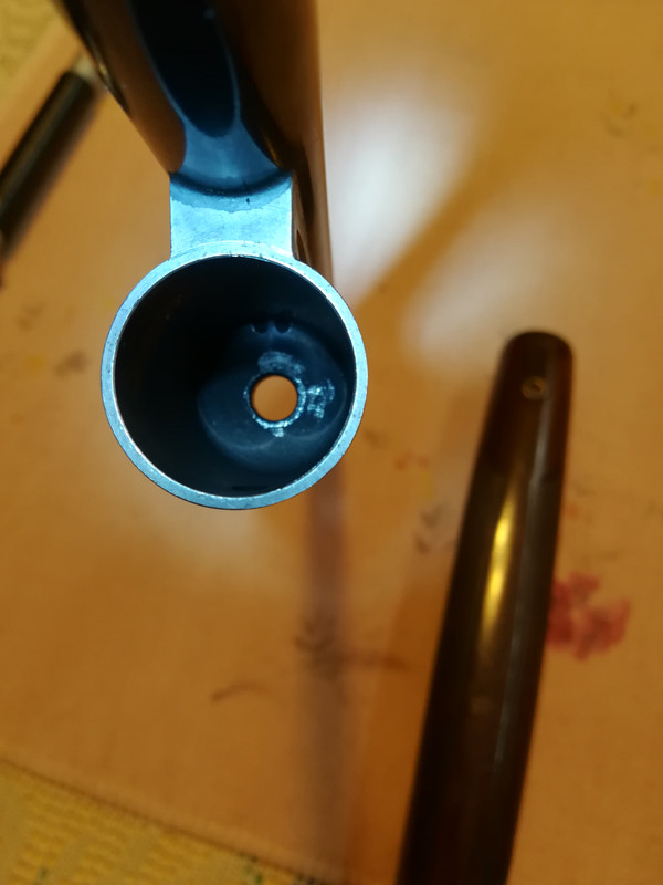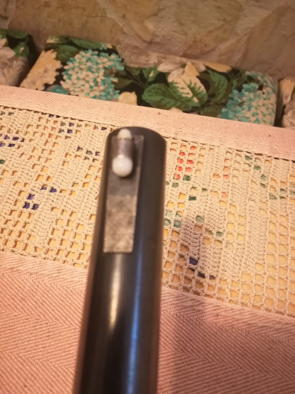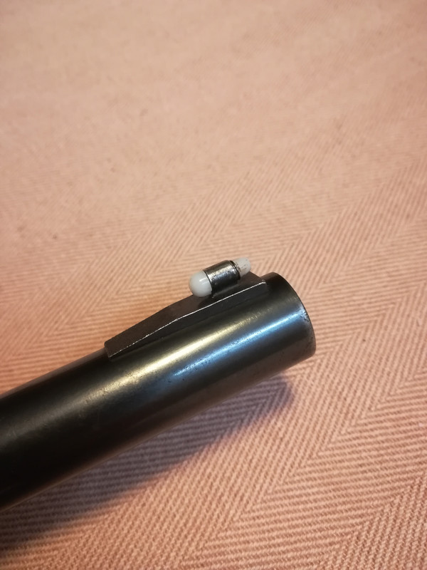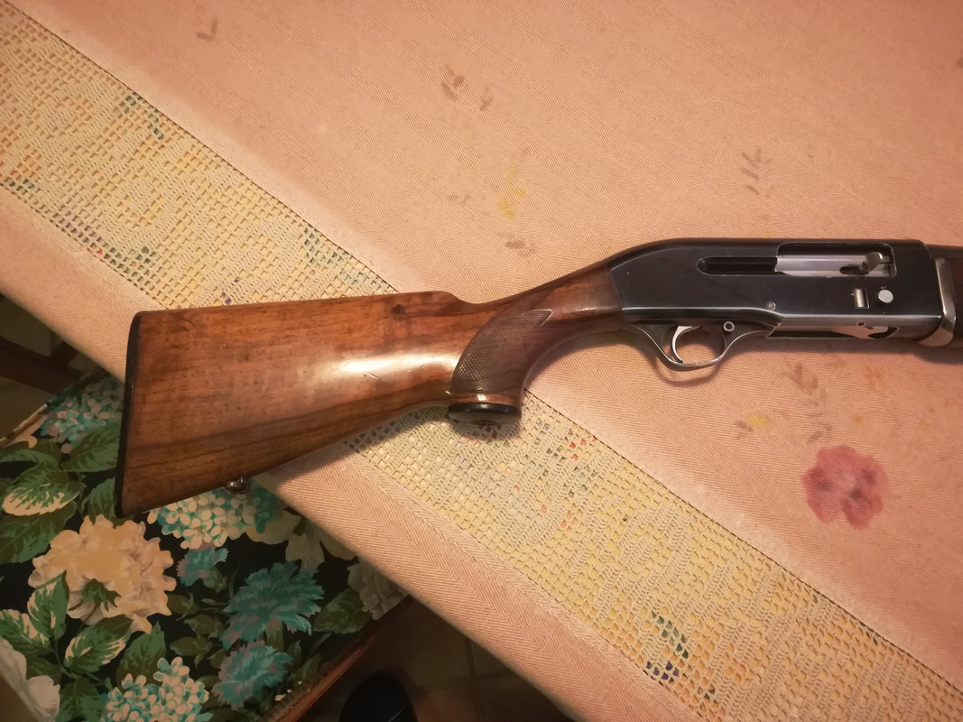 Canna e fucile mostrano entrambe i segni dovuti all'uso assiduo protratto nel tempo indice di ottimo funzionamento ed affidabilita' (per me il fucile ha sparato tanto !!!! ) ma nonostante questo lo scorrere del carrello nonche' il rumore e la velocita' nel chiudersi non hanno nulla da invidiare ai piu' giovani modelli parenti a lui che detengo.Il fucile andra' sicuramente pulito per bene appena possibile in quanto come detto ha dato tanto.Da quel poco che vedo comunque tutto come nei fucili dello stesso modello postati da altri utenti,coccetta senza fregio,asta d'armamento insolita rispetto ai successivi modelli,guaina astina con mezzaluna metallica e di conseguenza astina sagomata per cui non compatibile con i modelli successivi e viceversa.allego alcune foto per rendere l'idea.......