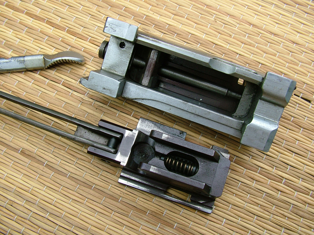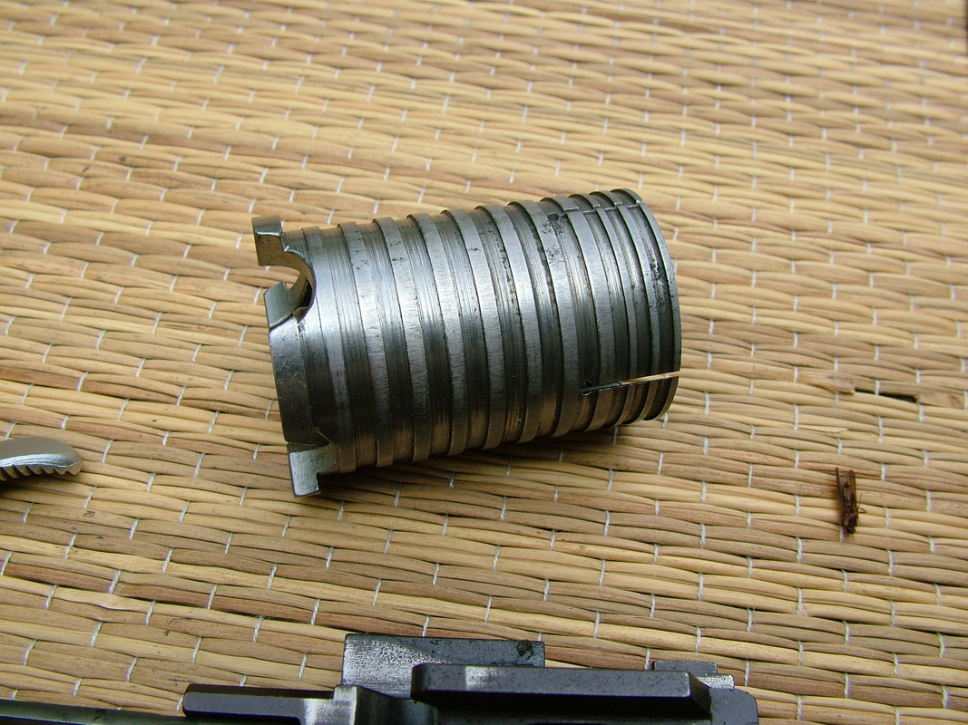 Il 300 in questione ha il pistone con le rigature superiori sottili come quello della foto (di qualche post sopra) e l'asta di armamento non è rivettata ma inserita nel tubo sembra a incastro e fissata con una ribattitura della testa del perno....