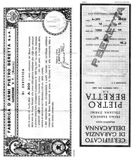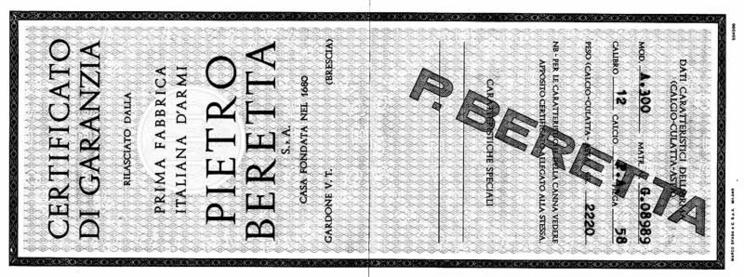 Certificato canna beretta