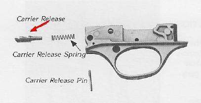 Lo sgancio della cartuccia che si trova all'interno del serbatoio, è comandato da un piccolo pulsante che si trova alla base del cucchiaio ma ciò avviene solo ad otturatore chiuso fatto apposta per mettere rapidamente la seconda cartuccia al posto della prima alloggiandola temporaneamente tra il cucchiaio stesso(che si abbassa verso l'esterno) e la canna.