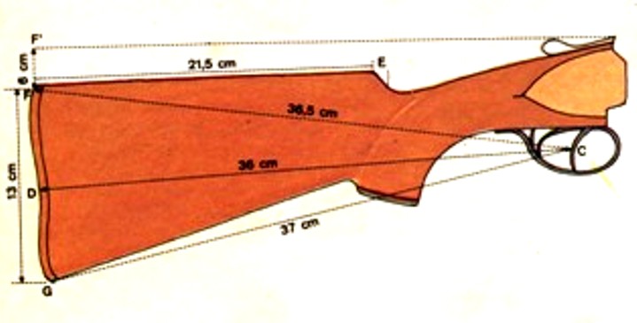 Mi interesserebbe la distanza dal grilletto.... al tallone, al centro della pala e alla punta, in foto c/f , c-d, c-g.