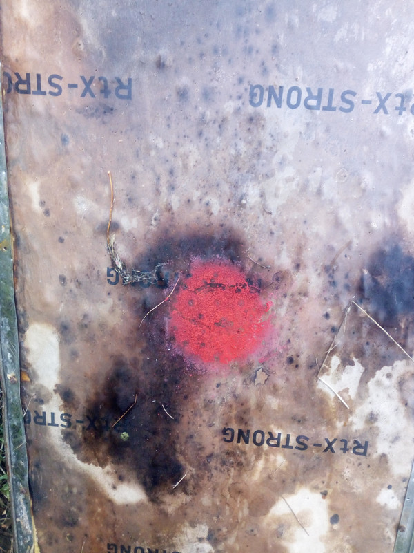 Il cerchio rosso potete paragonarlo a un tappo di nutella da 1kg. Si vedono perfettamente i pallini.No Matteoni ne aveva vari modelli in casa.L'ho preso per colombi al passo e qualche anatra poiché avevo MO1...poi l'anno scorso l'ho usato in un paio di rientri con cartuccette trovandomi bene e allora quest'anno il greystone non l'ho mai