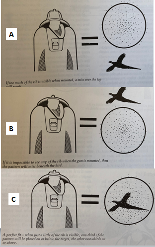 C'è gente(superfortunata) che nel momento in cui compra un fucile, spara e si trova perfettamente a suo agio, in quanto colpisce con una regolarità tale da farti rabbrividire dal primo colpo, in effetti hanno avuto un grandissimo c..o, in effetti il calcio gli calza a pennello; di solito sono le persone con colli corti(alla Maurizio Costanzo) che si trovano subito in linea con la mira senza modificare nulla;
