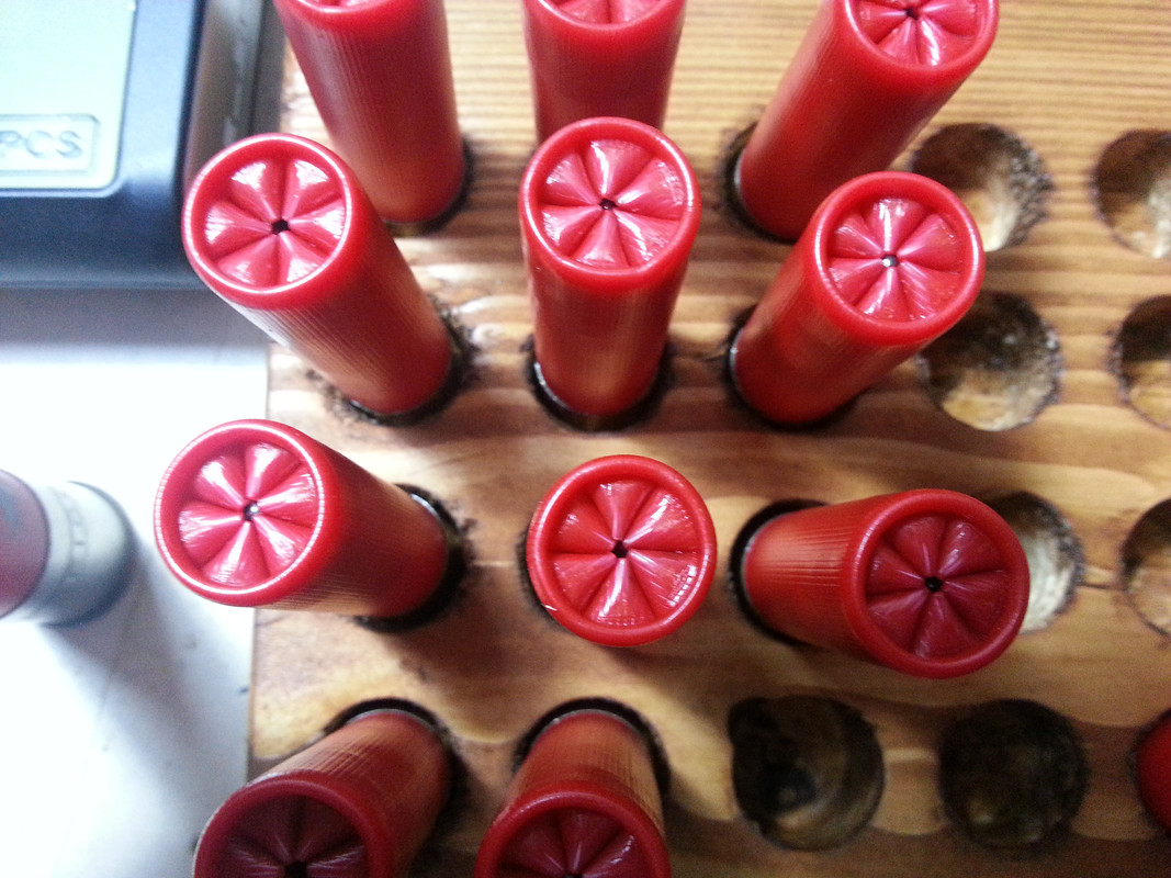 È' un consiglio che mi ha suggerito un amico, appena inciso bossolo, "schiaccio" la stella con la bobina ferma, impedendo alle pieghe di aprirsi. Ripeto questa operazione per tutte le cartucce che carico in quel momento, poi faccio l'orlatura su tutte. P.S. Prima le schiaccio tutte, per evitare di accendere e spegnere il motore della macchinetta o del trapano a colonna.