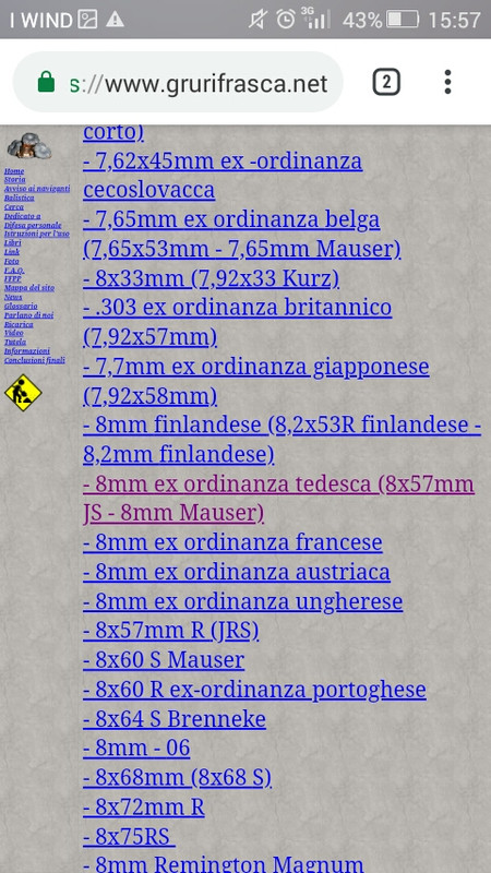 8x57 js è un ottimo calibro assieme a 8x57 jrs per basculanti ,avevo visto un cacciatore di cinghiali dotato di questo calibro sò che ricaricava e si trovava benissimo ma non saprei dirti di più . Mi sembra di ricordare che il calibro effettivo è di 8,22 per entrambi .Esiste anche il più vecchio datato 8x57 j e 8x57 jr che nello specifico dovrebbero essere di 8,2 quindi due decimi in meno ma se la memoria non mi inganna i primi lavorano con pressioni più alte e vale la pena di ricordare che i primi non sono intarcambiabili , a proposito l ' 8 mauser era accreditato leggermente superiore al 30/06 .la remington in passato produceva questo calibro ma sembra che non desse risultati positivi per precisione in poligono essendo la palla leggermente sottocalibrata . angelCommenta