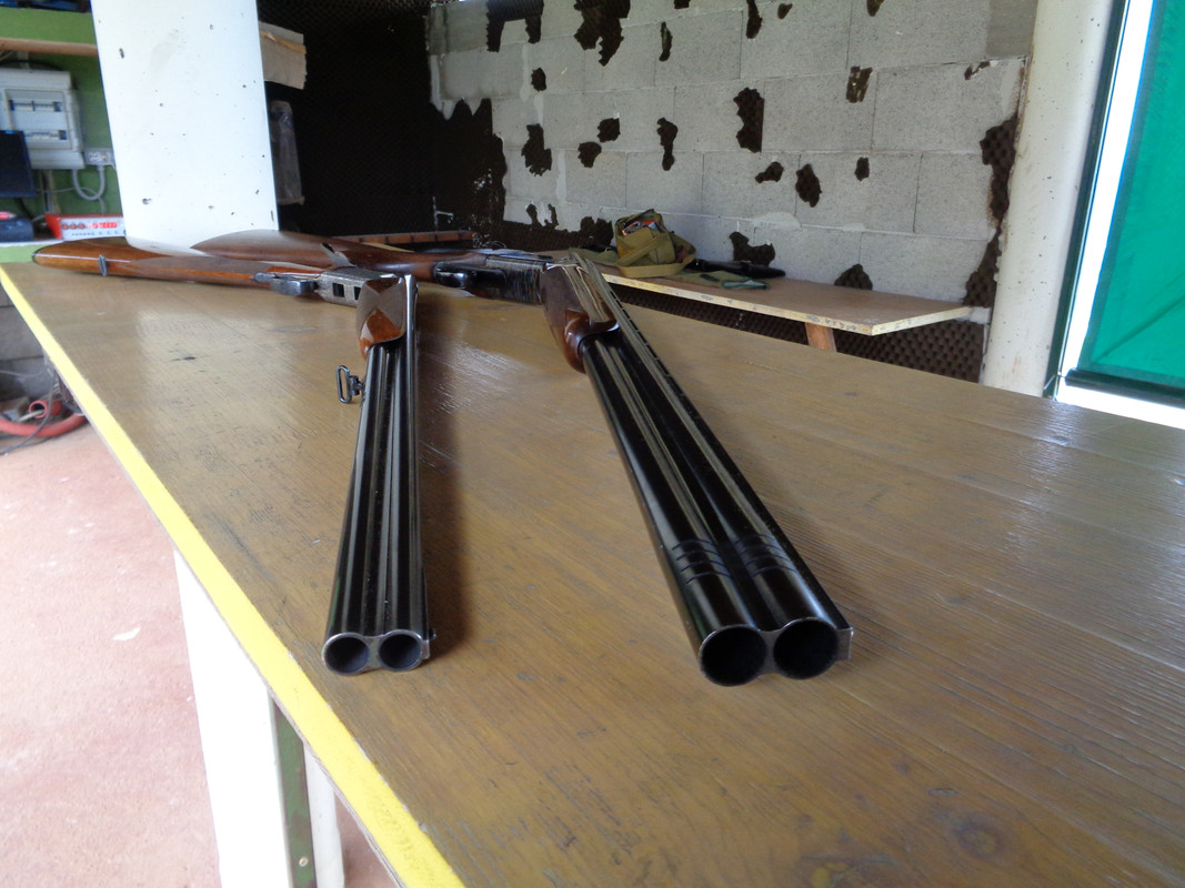 [brindisi]due bei vivi di volata a confronto, a dx un Perazzi cal 12 Skeet e a Sx un Zanoletti cal 32 canne cromate speciali da 72 strozzate 2-1. Stesso tiratore proprietario, mio fratello, al Percorso caccia , 23 su 25 con il 12 Grand'Italia Clever 7 1/2 da 28g, seconda serie 21 su 25 con il cal 32 con cartucce di M92S con 18g di pallini pb 8 con tradizionale e chimico