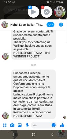 Scusa Ronin... qualche post fa affermi che non eri a conoscenza dei nuovi tipi di polveri ed ora viene fuori che l'hai bancata nel lontano 2016???[occhi]A proposito vorrei mostrare a tutti una cosa, si tratta di una domanda fatta alla assistenza Nobel sport circa il cambiamento di Sipe ed s4.