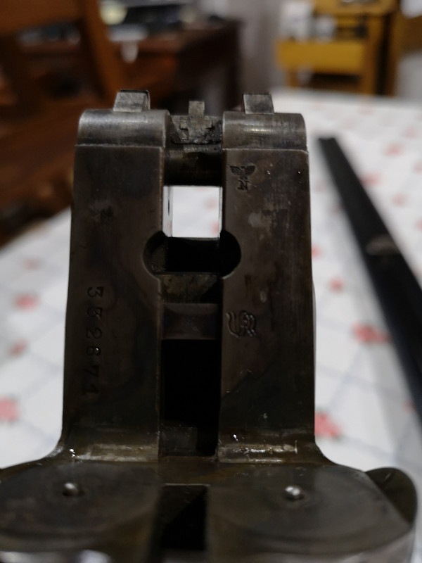 Il punzone che raffigura l'aquila con N sottostante e' il punzone della prova definitiva del banco a polvere senza fumo(usato dal 1945) , lo scudetto con base a semicerchio con all'interno il martello da minatore e una suola e' il punzone del banco di prova di SUHL(anch'esso usato dal 1945), le camere sono da 65mm anche se e' strano quel 70 apposto sopra, sono presenti sul fucile ejector e triplice chiusura.Buone le condizioni di faccia e piani di bascula,(quasi sicuramente tartarugata viste le ombreggaiture blu) come pure il catenaccio che blocca i ramponi.A vederla cosi' e consideranto il produttore che non andava certo per il sottile in fatto di robustezza direi che sia piu' che utilizzabile.Certo da verificare camera, interno canne e chiusure.Attendiamo qualche foto dell'intera arma.(io gli darei una bella lavata con pennello e petrolio bianco sia alle culatte che all'intera bascula appendendola per il calcio per evitare che possa colare sui legni.Vedo parecchio sporco...[;)])