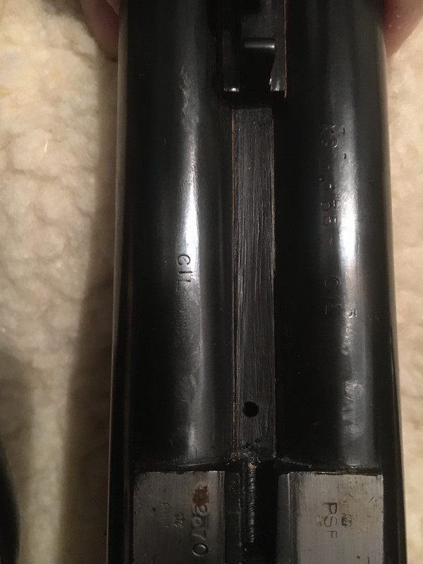 Sui piani delle canne c'e' anche una bella R sormontata da stella , sono state riprovate al banco...Sicuro non siano state tagliate ?Trovo strano CIL CIL, mi sarei aspettato i punzoni di foratura in decimi.Non escluderei che il peso punzonato sia stato apposto dopo il taglio durante la riprova.Dalle foto non vedo se ci sono altri numeri, controlla bene.Non capisco la foratura 7,7 di cui parli : dove la leggi ? Fai una foto e postala...[:-bunny]Dall’analisi dei punzoni l’arma è ampiamente testata per le polveri infumi. Non si evincono camolature o cricche strutturali evidenti. Chiaramente non dispongo di un microscopio elettronico in grado di evidenziarle come credo nessuno ne abbia uno a disposizione quando acquista un’arma usata, anche più recente. Credo che il giusto equilibrio su carica da 28 a 34 grammi sia corretto. Chiaramente non è il caso di caricarla con cartucce insulse per grammatura e potenza viste anche le caratteristiche dell’arma.