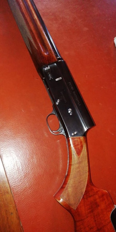 Il tuo splendido Auto 5 non è un modello realizzato per il mercato europeo, ma per quello statunitense, e lo si evince dal fatto che le scritte sulla canna siano in inglese, e riporti solamente la dicitura Browning e non FN, inoltre riporta sul lato destro il nome di Peter Buchwald, che probabilmente era uno degli importatori od una importante armeria che assorbiva una importante quantità di fucili per la casa di Herstal.