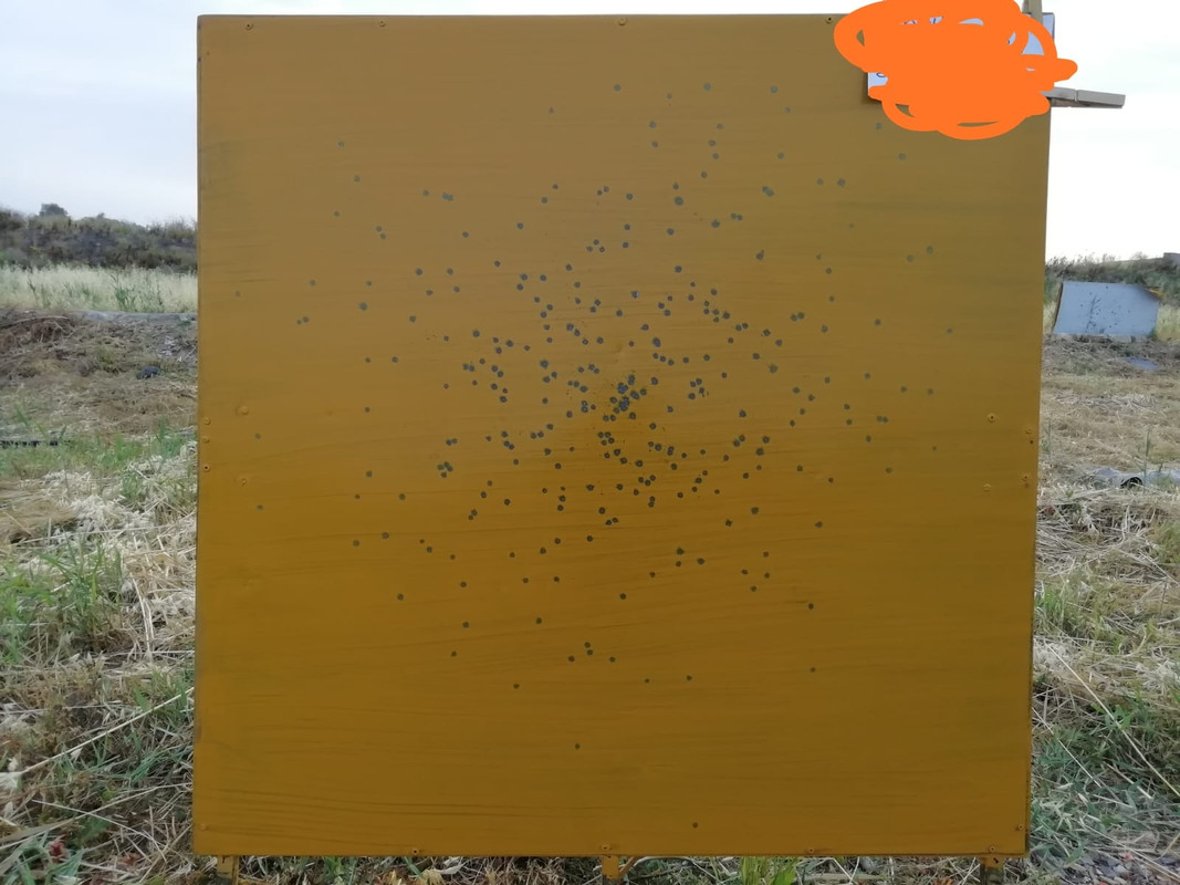 Buonasera a tutti questa invece è stata sparata con un altra grandissima canna... Nn ha limite di utilizzo mi ha dato tantissime soddisfazioni su qualunque selvatico..... Questa cartuccia è stata sparata a 33 m con piombo 6 e 31 gr di piombo... Creata per i colombi