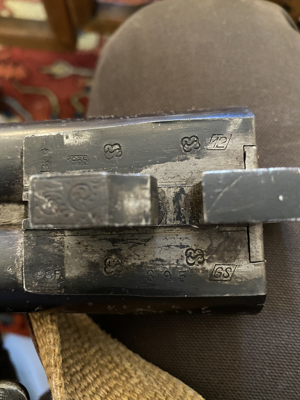 Quello che reputi un giglio è un punzone degli acciai di provenienza belga. La prova di pressione è normale ed è fatta in Italia con polveri senza fumo. In genere le canne o le armi di provenienza belga erano roba economica, ne ho una anche io ma ha passato il secolo. Se cerchi tutti i punzoni e le scritte e perdi un paio di ore, difficilmente non riuscirai a trovare notizie sul fabbricate.