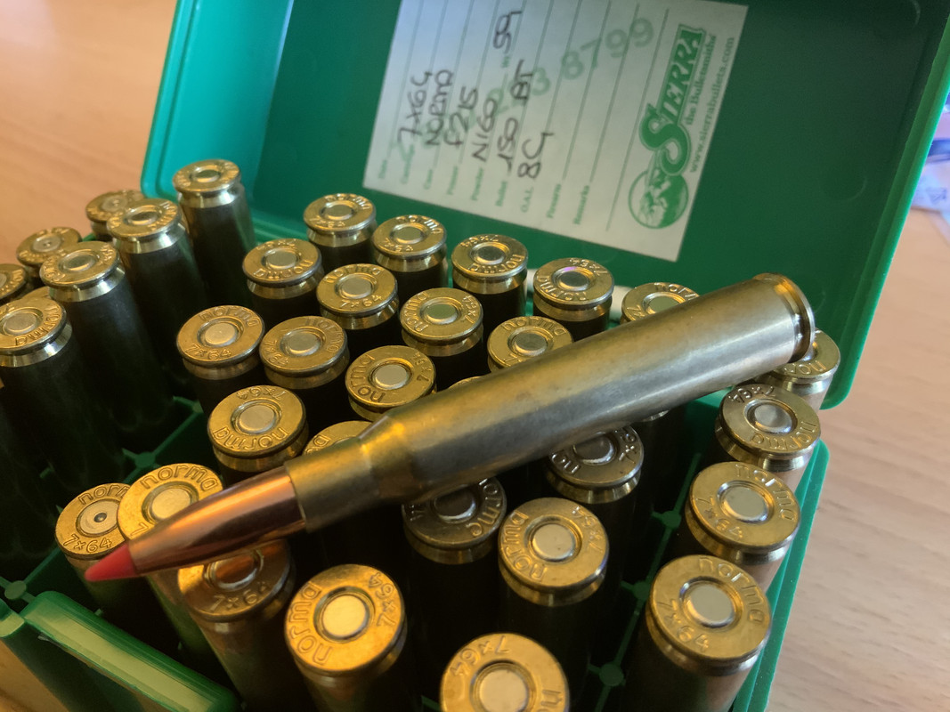 Nel 7x64, con palla da 150 grs il manuale Vihtavuori è difettoso, perchè utilizza tre palle tutte di tipi particolari. Nessuna palla SP standard, normalissima, tipo Sierra, Speer o Hornady, da cui dedurre un caricamento normale e sicuro con palle a struttura standard.