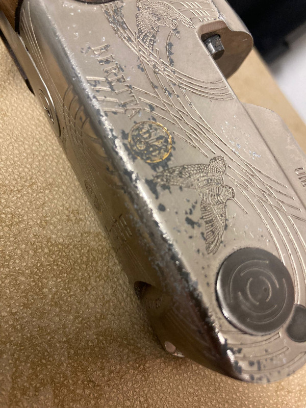 Leggo che si chiede quali sono i pregi ed i difetti del Beretta Ultralight. Bene , io lo posseggo dal 2013 (bigrillo, canne 62 con strozzatori ) acquistato nuovo ed utilizzato in questi anni costantemente per la caccia alla beccaccia. Nulla da dire meccanicamente , canne perfette , legni di discreta qualità, ho il modello classic. Sulla finitura della bascula però non ci siamo, pian piano lo strato di anodidazzione si sta scrostando, i primi difetti risalgono ad anni fa (fuori garanzia). Allego foto.