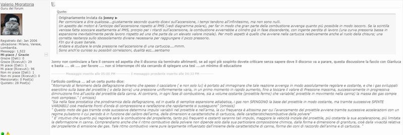 Per favore puoi spiegarmi perchè se sparo una cartuccia con bossolo da 76 mm chiusa stellare ( quindi meno 12 mm) in una camera di cartuccia da 70 mm, si ha un incremento dell'apice della pressione massima considerato che, come affermi, tale apice di pressione è raggiunto a cartuccia "tappata" ???? Grazie