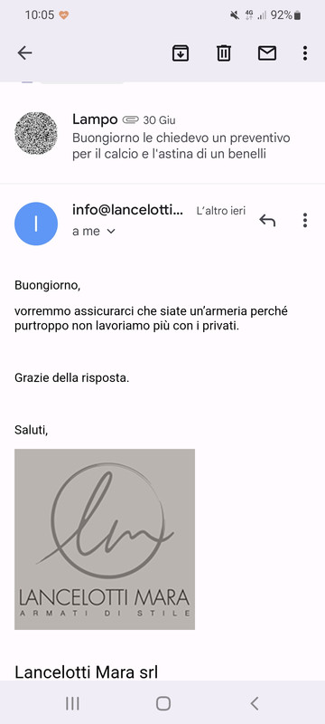 Comunque ho contattato la ditta che lo aveva fatto a voi e mi hanno risposto che lavorano solo più per le armerie e non più per i privatiUltima modifica hisdastar; 01-07-22, 06:20.Commenta