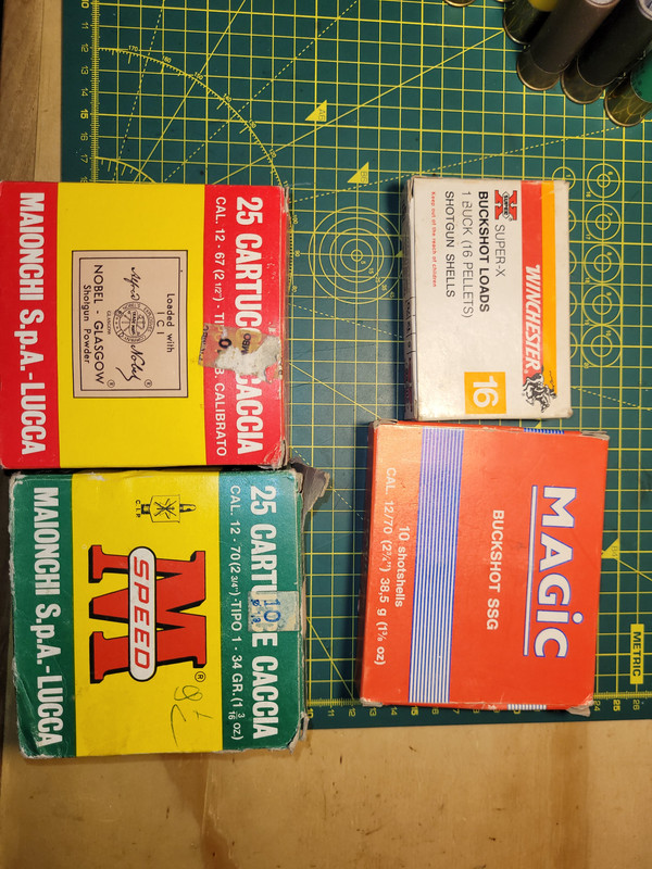 Ti hanno regalato dei bei cimeli, Maionchi, Pm34, Winchester standard, quelle rosse con bossolo marcato FN mi sembrano Legia, le Rottweill nere orlo tondo sono ricaricate, MB, Maionchi percorso caccia!? Quelle blu, diverse pallettoni originali e ricaricate, le Maionchi arancioni speed corazzate bossolo superfiocchi probabilmente hanno la borra contenitore compromessa dal tempo, ne avevo una scatola avevano la borra tutta sbriciolata se sparate non avrebbe fatto alcun tenuta. A parte le ultime quelle in cartone che non sparerei molte delle altre nonostante il tempo sembrano in buonissimo stato, comunque perché rischiare? Eventualmente sezionane qualcuna per tipo e verifica tutti i componenti, magari con qualcuno esperto. Se non sei sicuro non rischiare.