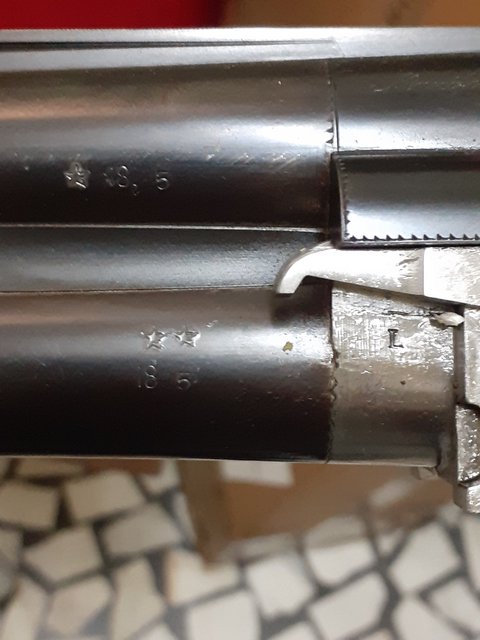 Io sapevo da un catalogo Perazzi che ho , che su alcuni MEX le canne avevano un cerchietto in oro . Stava a significare canne selezionate e in questo catalogo avevano un costo di cento mila lire in più. Una mia supposizione che quel fucile sia stato volutamente abbellito,( vedi incisione sulla bascula) oltre alla lettera