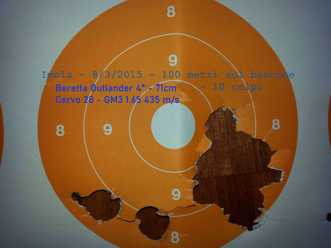 Dalle prove fatte al poligono, grazie anche alla canna del mio A301 Beretta che è veramente una gran canna, a 50 metri fa un buco dentro l'altro, e sporca la canna pochissimo, perché la palla è verniciata. Ma a tirare da seduto con tutto il rinculo sulla spalla vi assicuro che passa la voglia in breve, almeno a me.