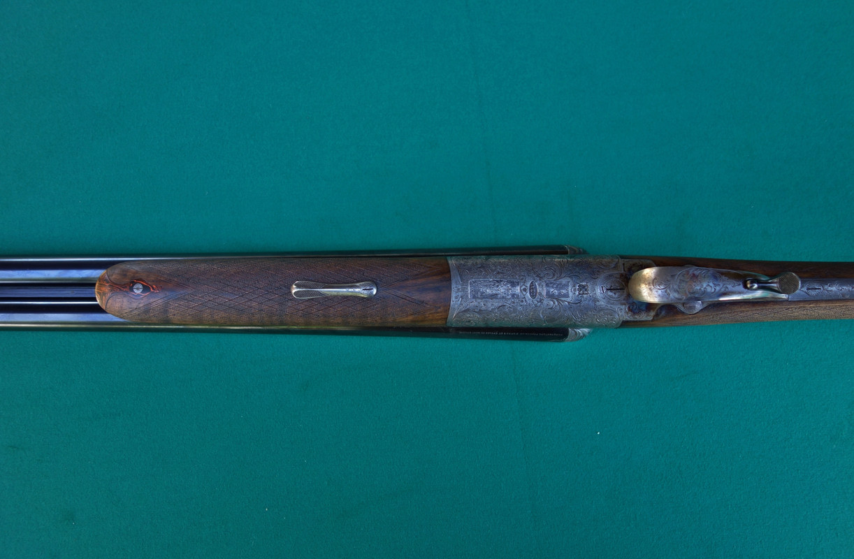 le bascule arrrotondate sono bellissime,specialmente con la tempra tartaruga ,complimenti per questa deliziosa doppiettina.Negli anni 70" ,questo marchio,ancora usava il sistema della bretella riavvolgente nel calcio.Ci sono uscito qualche volta, al contrario di quello che si potrebbe pensare le canne sono strozzate, 5 e 10 decimi, forate 18,4, quindi tira a lungo.